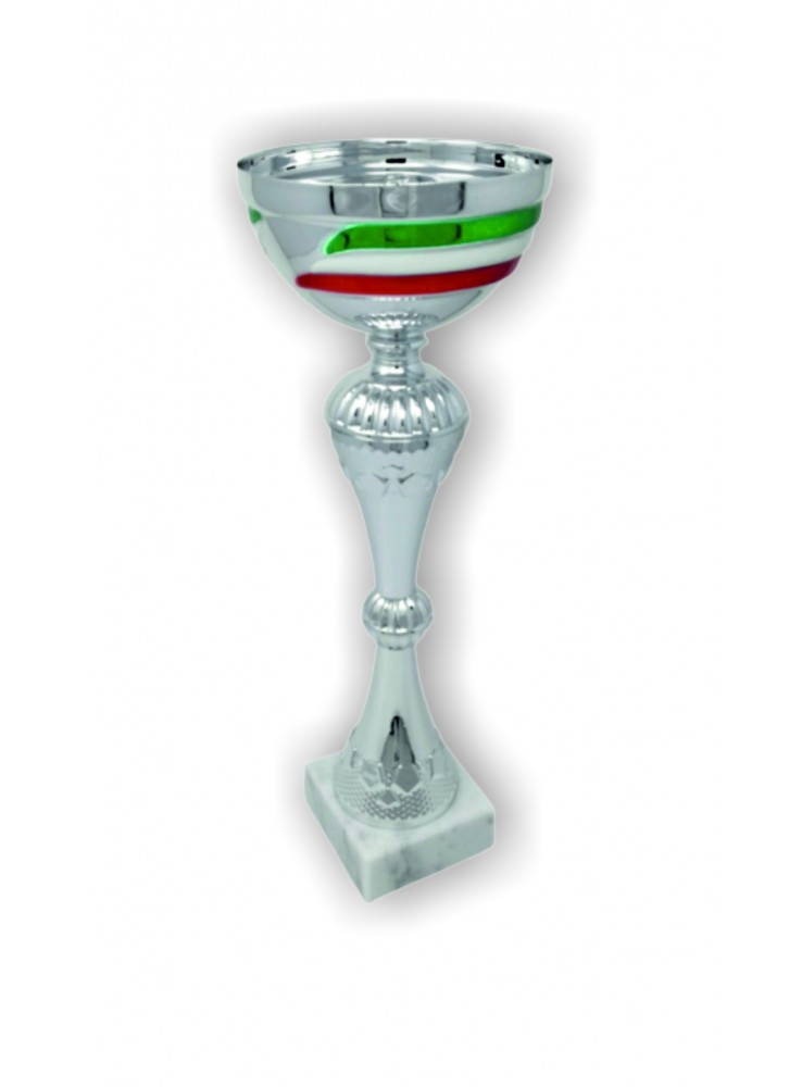 Coppa con tazza in metallo Tricolore Italia. Targhetta in alluminio personalizzata con scritte e loghi (anche a colori) OMAGGIO E GIA' APPLICATA ALLA COPPA.